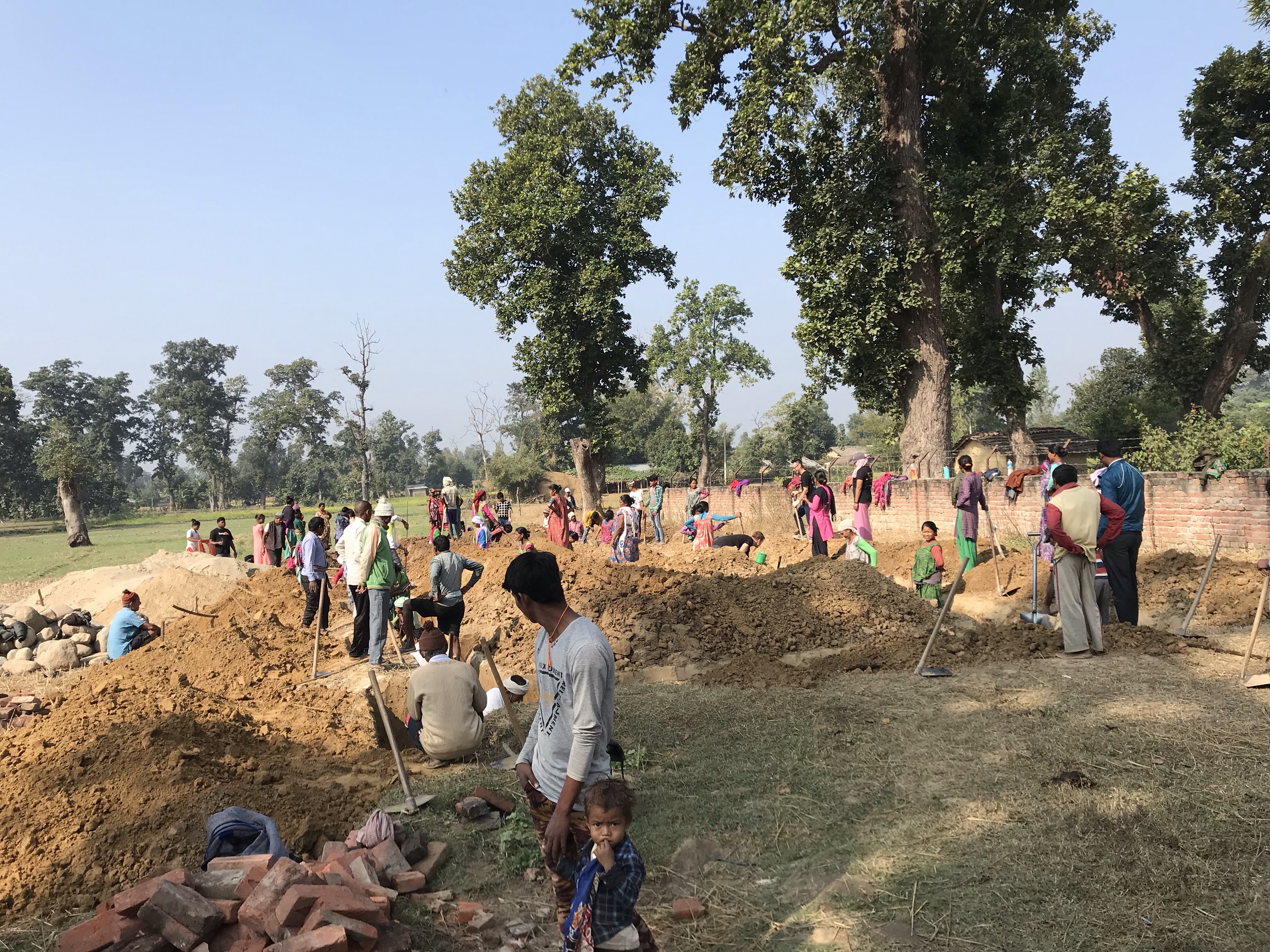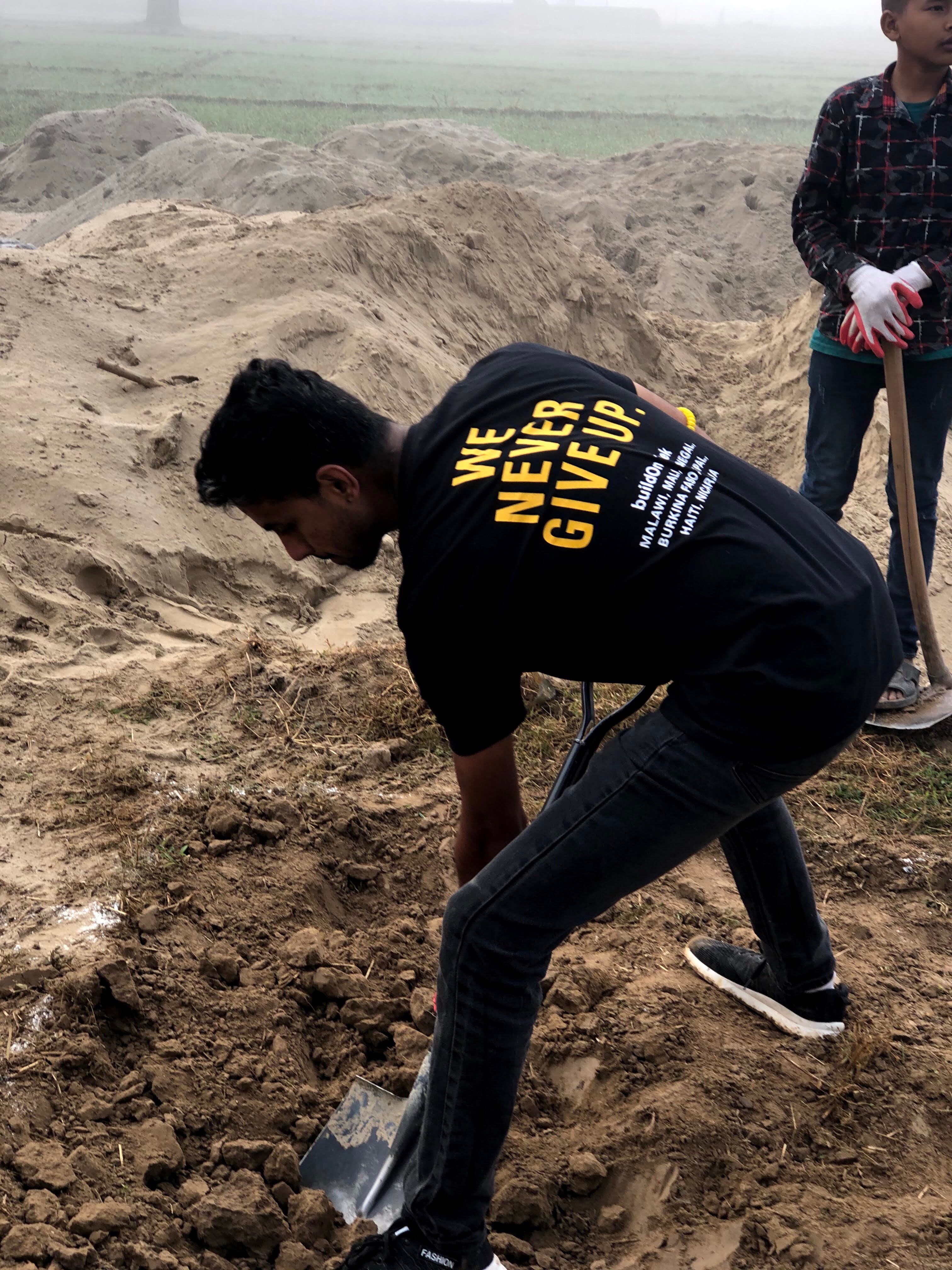 3rd, 4th and 5th December – the days started early at 6AM with Yoga. At 7AM we had breakfast at Kaliram jis house who was kind enough to let buildOn team use his house facilities to arrange breakfast for the team. At 8AM we would form a circle near the work site and get going with the construction work. Through these 3 days, we had back breaking work especially for someone like me who has never done something like this. But whenever I saw the community come together to do it, the kids who had to attend school at 10AM be ready at 8AM to start working at the site, all my pains/cramps would go away and we would all come together to build the school like we were on a mission! We also had a lot of fun doing it..